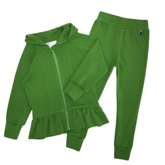 Set cardigan cu volane si colanti din lana merinos extrafina Moss Green