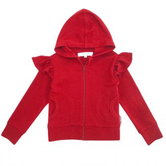 Cardigan din lana merinos extrafina cu volane Maroon Red
