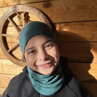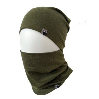Set caciula dublata si guler din lana merinos si matase Dark Green