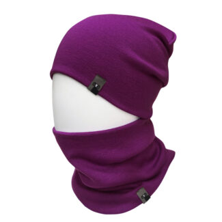 Set caciula dublata si guler din lana merinos extrafina Plum