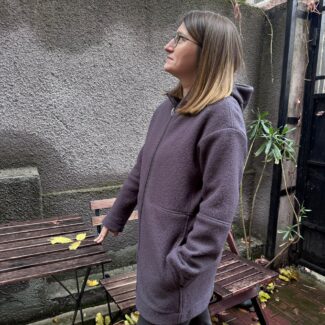 Hoodie dublat reversibil din lana merinos extrafina Plum/ Dark Grey
