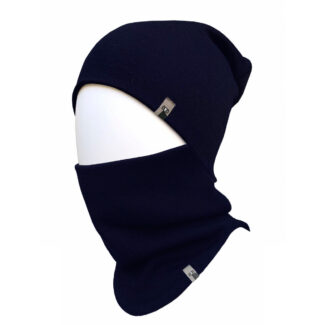 Set caciula dublata si guler din lana merinos extrafina Dark Navy