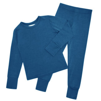 Set bluza si colanti din lana merinos si matase Dark Navy