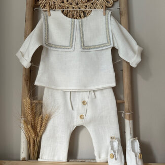 Set bluza si colanti din lana merinos si matase Sky Blue