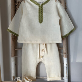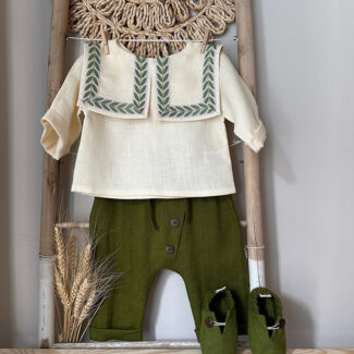 Set bluza si colanti din lana merinos Yellow Pistachio