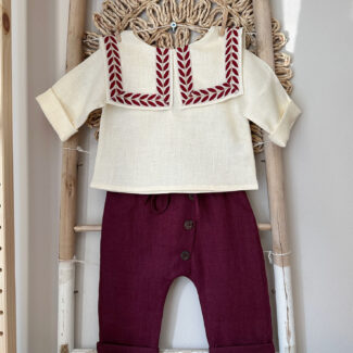 Set bluza si colanti din lana merinos rib pointelle- Grape