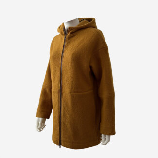 Hoodie dublat reversibil din lana merinos extrafina Saffron/ Dark Grey cu stelute