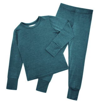 Set bluza si colanti din lana merinos si matase Emerald Green