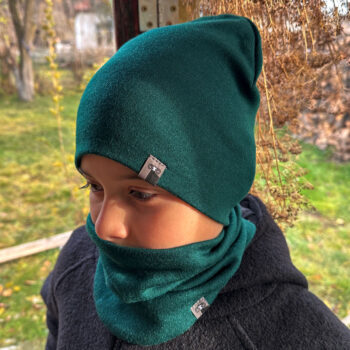 Set caciula dublata si guler din lana merinos extrafina Emerald Green