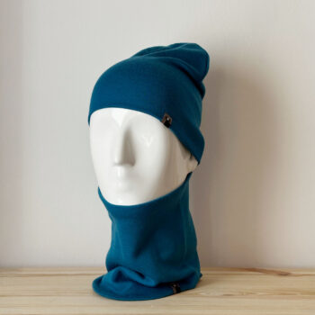 Set caciula dublata si guler din lana merinos extrafina Blue