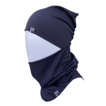 Set caciula dublata si guler din lana merinos si matase Dark Navy