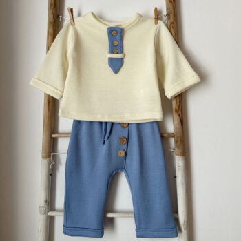 Costumas de botez din lana merinos extrafina Cream/Turquoise