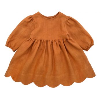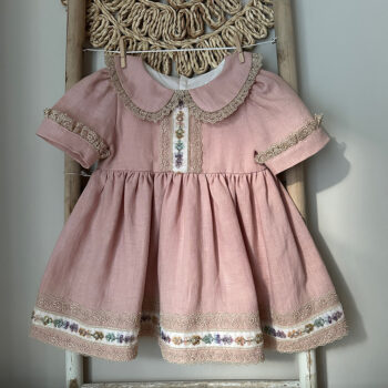 Rochita de botez din in organic Dusty Pink cu dantela flower