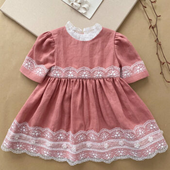 Rochie de ocazie din in organic Salmon cu dantela flower