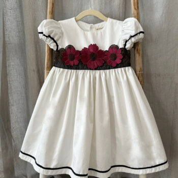 Rochie din bumbac satinat cu maneca scurta White cu flori