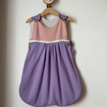 Sac de dormit dublat din lână merinos extrafină – Dusty Pink / Lavander cu nasturi si fermoar