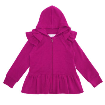 Cardigan cu volane din lână merinos extrafina Fuchsia