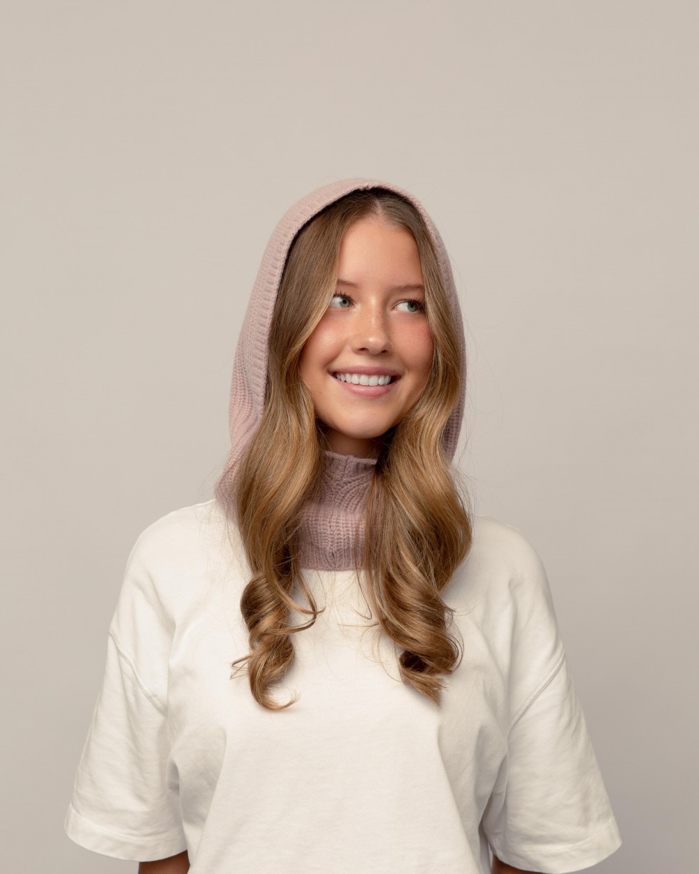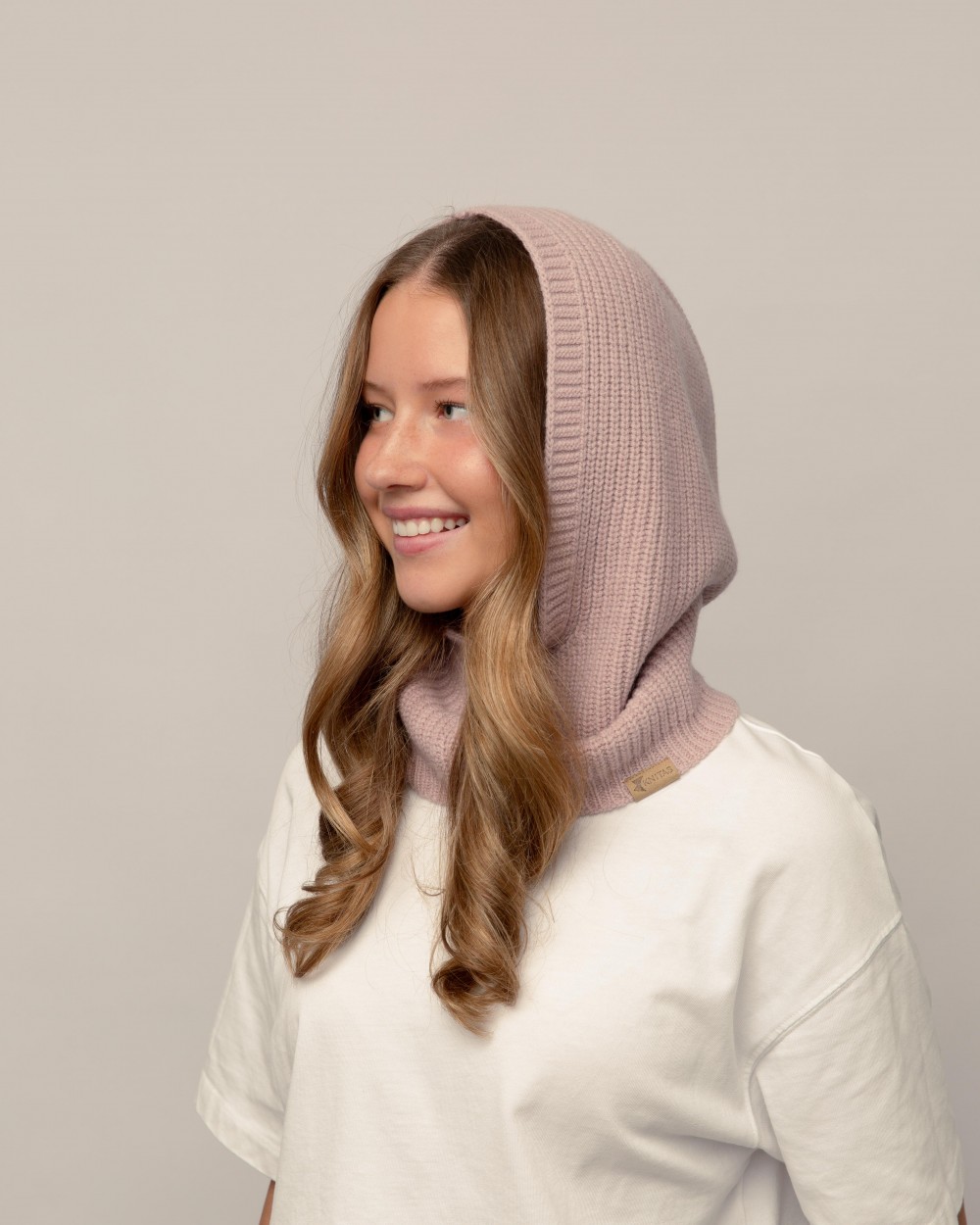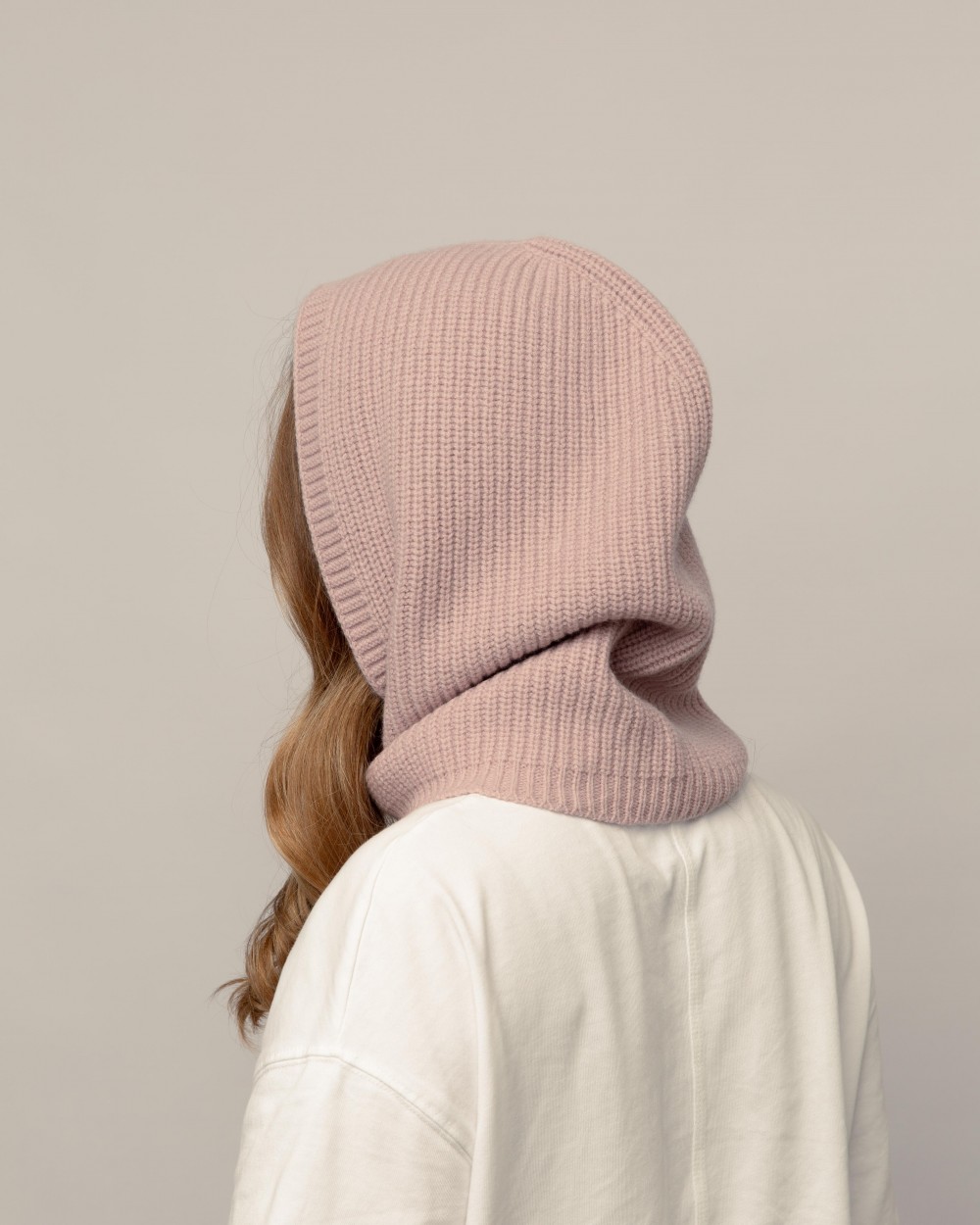 Balaclava adulti din lana merinos si casmir – Caciula beanie – Dusty Pink