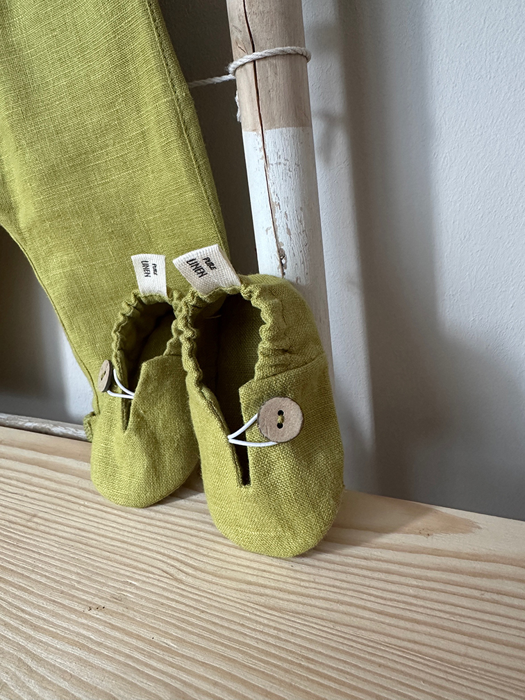 • Completarea setului cu Costumas de botez din in organic Cream/ Lime