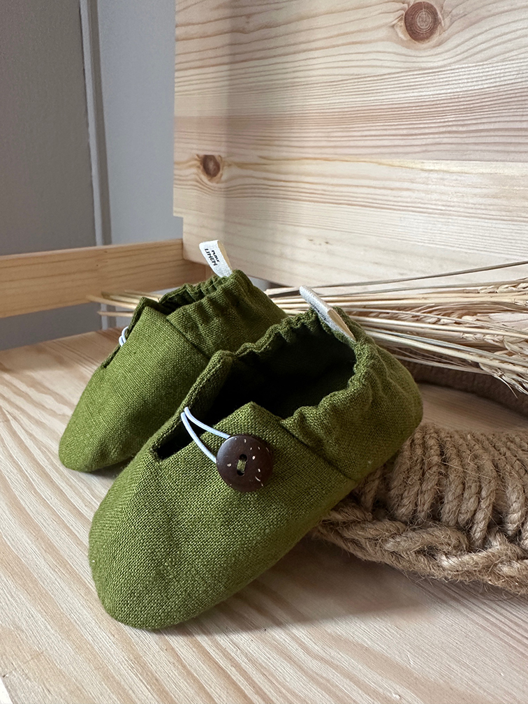 • Completarea setului cu Costumas de botez cu guler din in organic Cream/ Moss Green