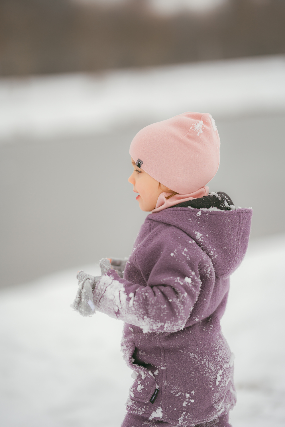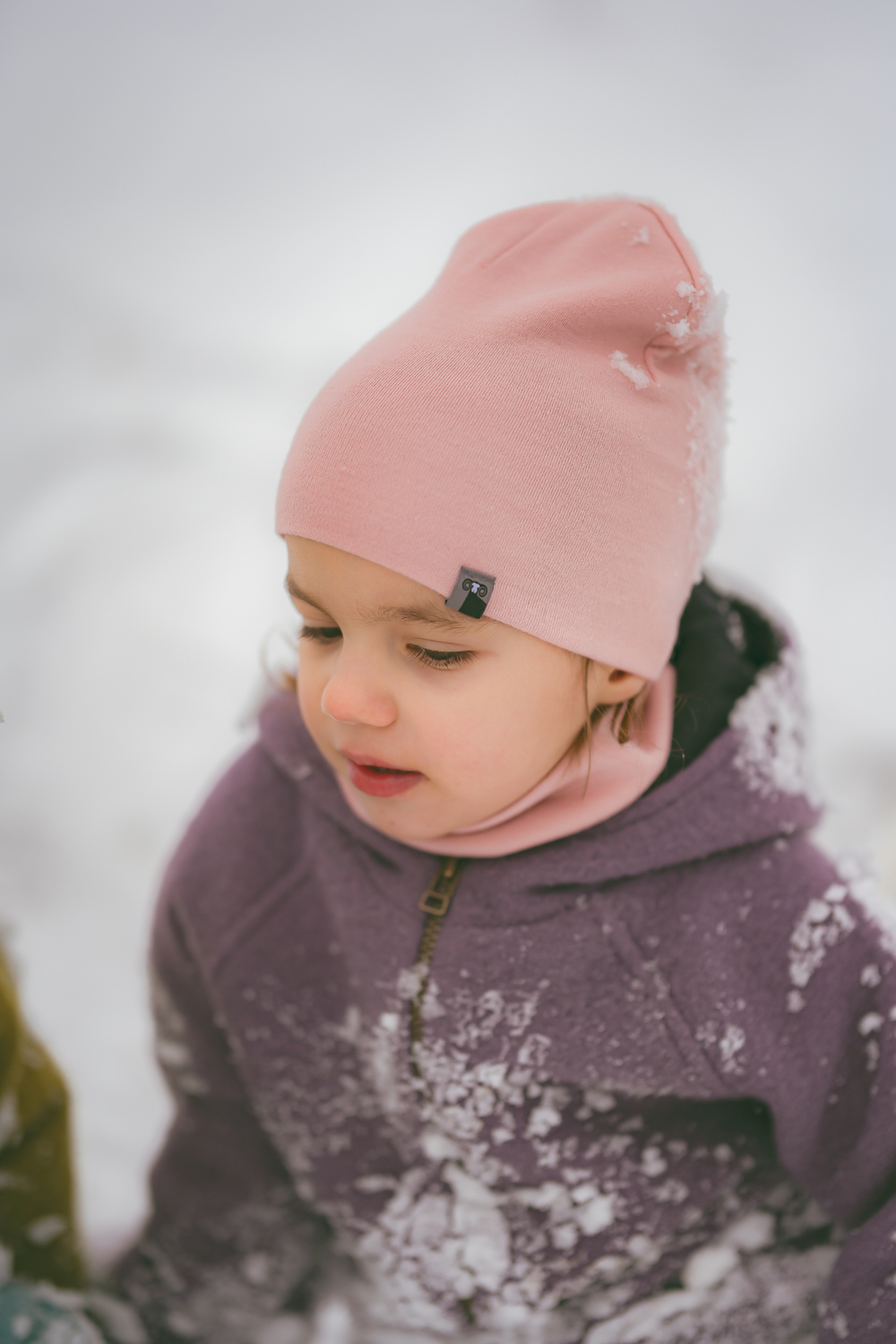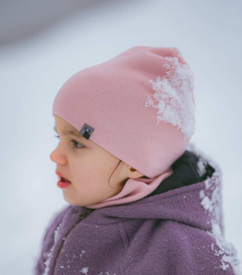 Caciula dublata din lana merinos extrafina Dusty Pink