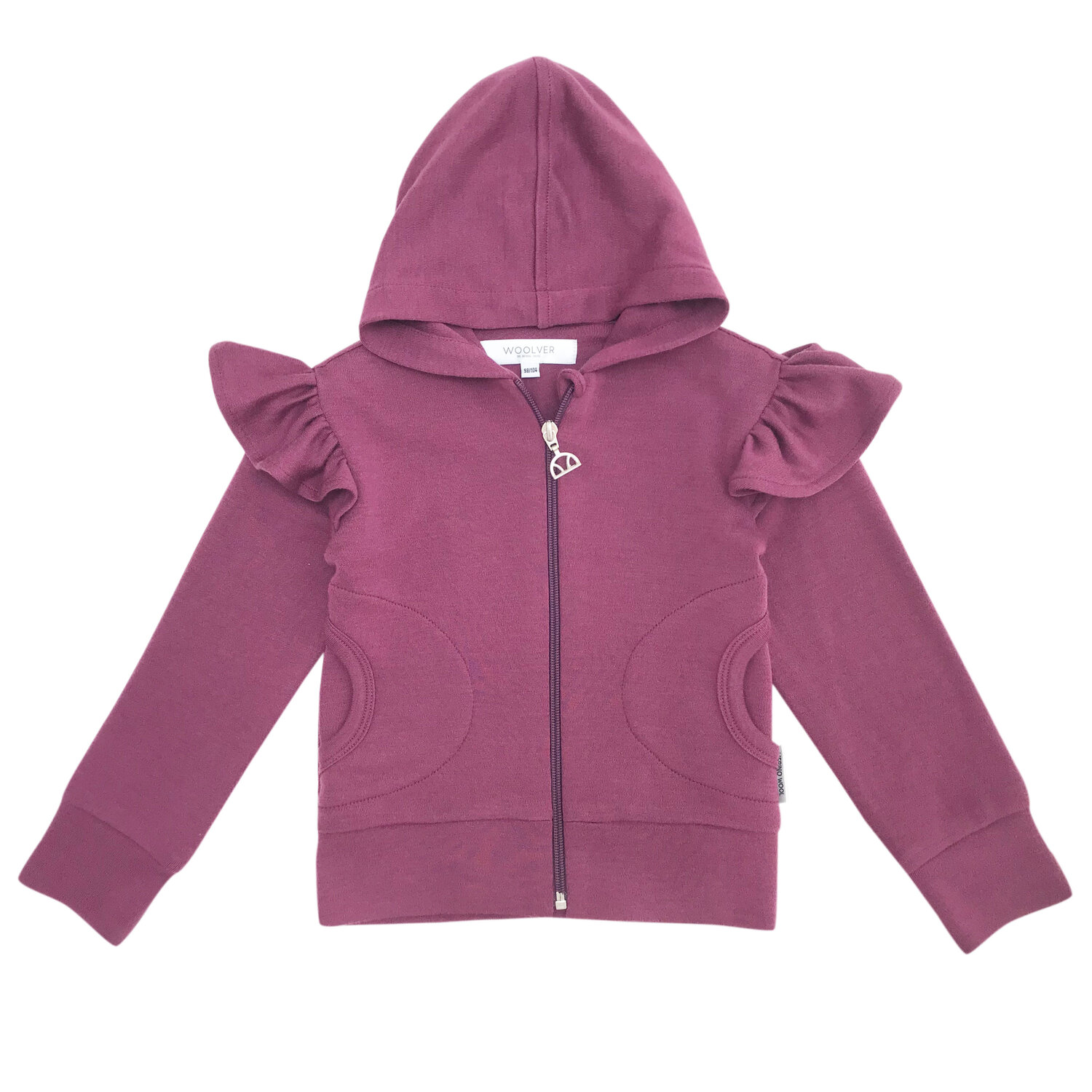 Cardigan din lana merinos extrafina cu volane Mulberry Purple