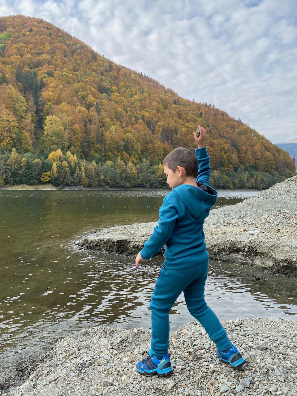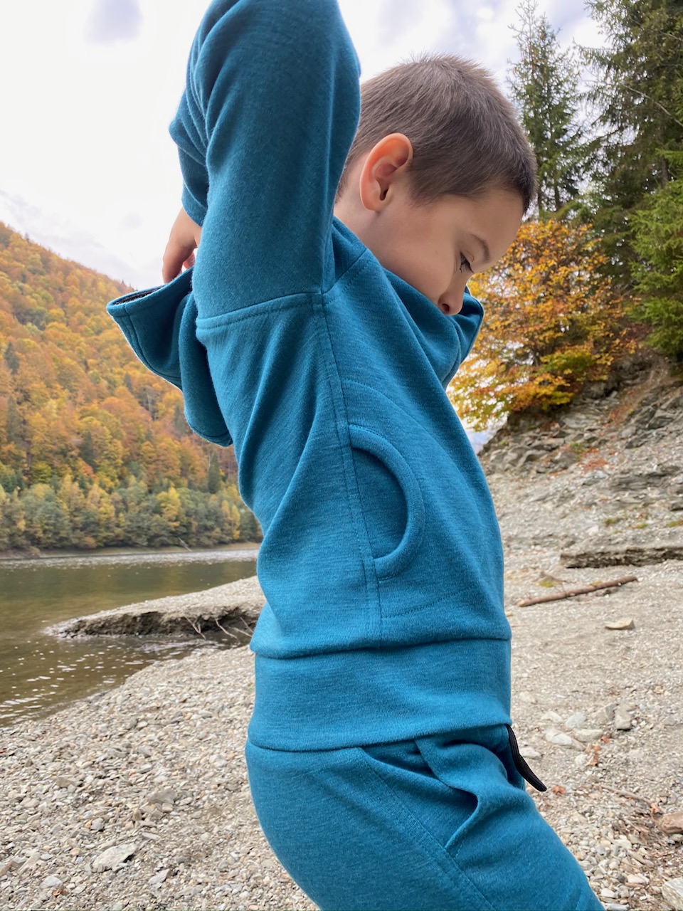 Pantaloni dublati reversibili din lana merinos extrafina cu buzunare pentru copii. Stil relaxat si extrem de confortabil, dintr-un material moale si foarte placut pe pielea copiilor.