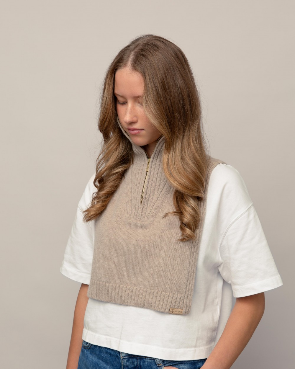 Guler tip buff cu fermoar, realizat din lână merinos extrafină și cașmir. Un accesoriu premium, moale și lejer, care oferă căldură, eleganță și confort în orice moment al sezonului rece.