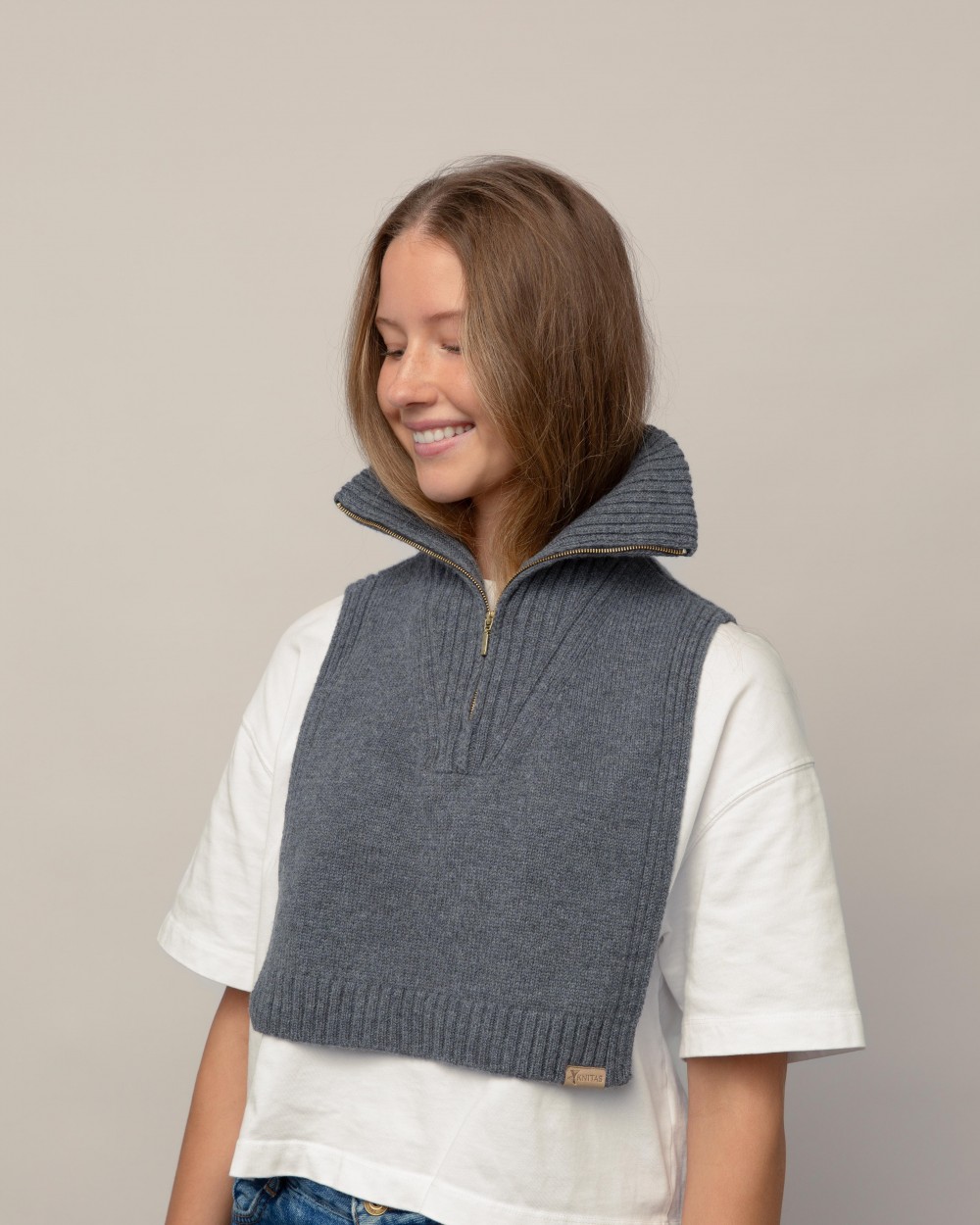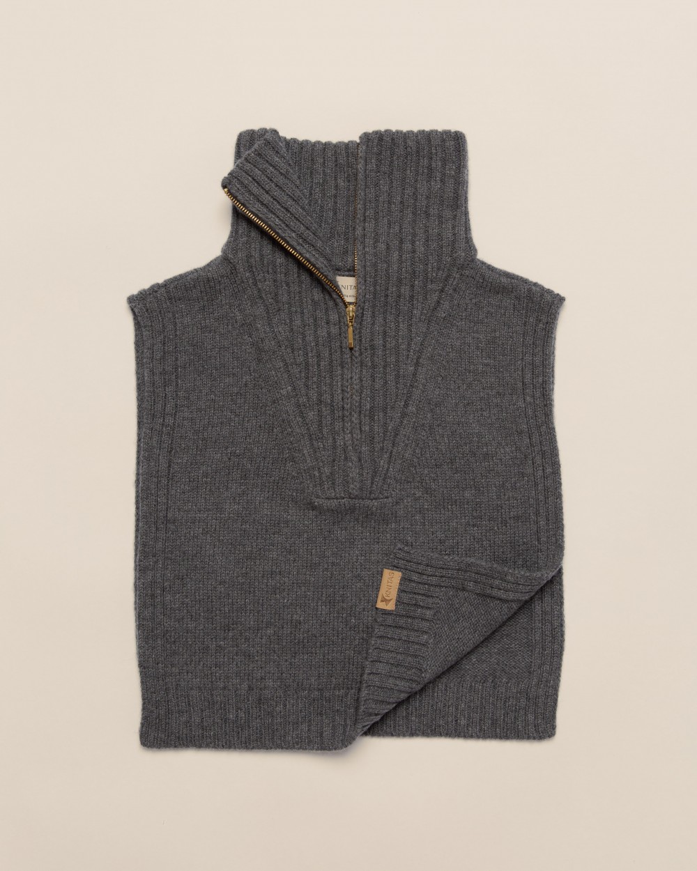 Guler tip buff cu fermoar, realizat din lână merinos extrafină și cașmir. Un accesoriu premium, moale și lejer, care oferă căldură, eleganță și confort în orice moment al sezonului rece.