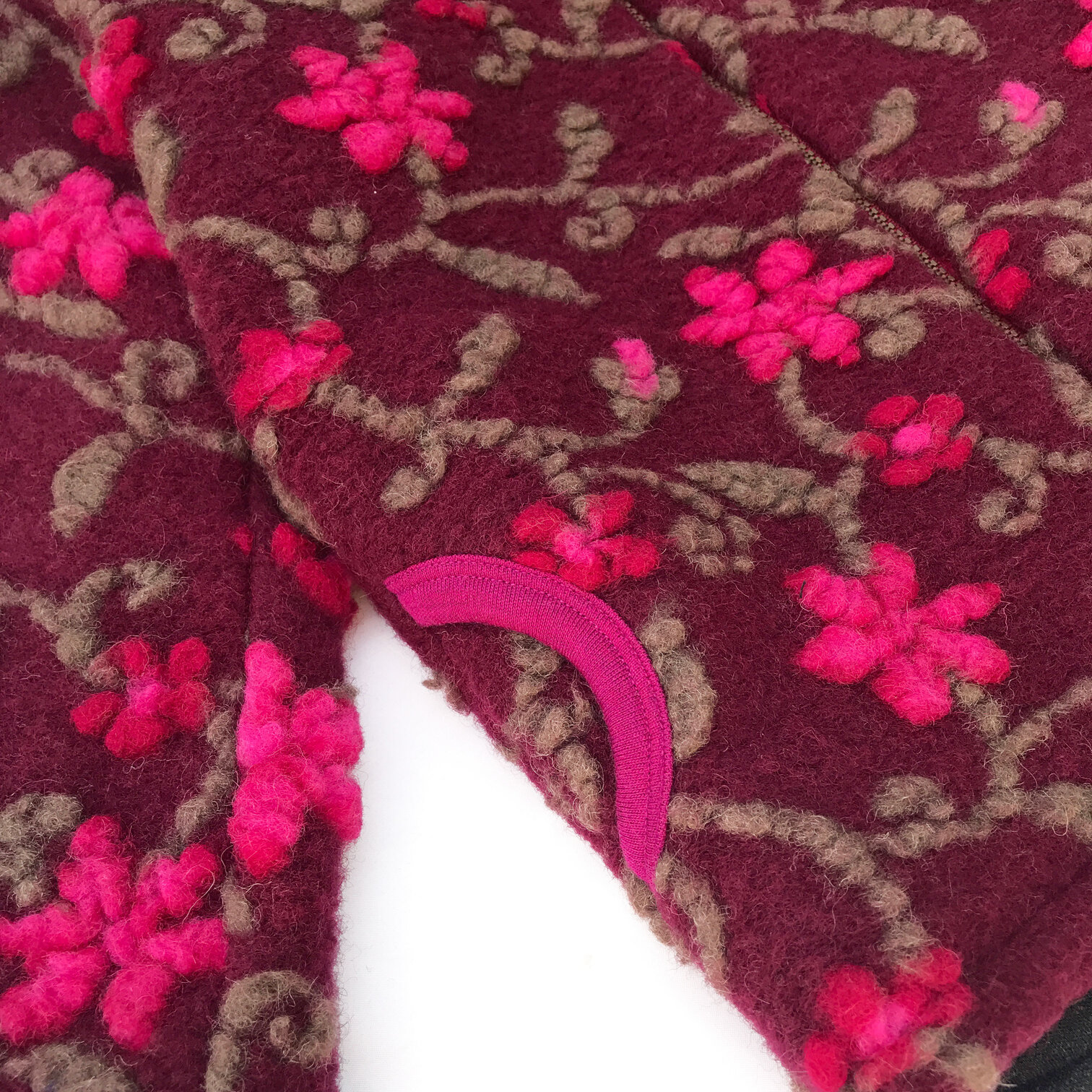 Jacheta dublata din lana fiarta Bordeaux Fuchsia Flower