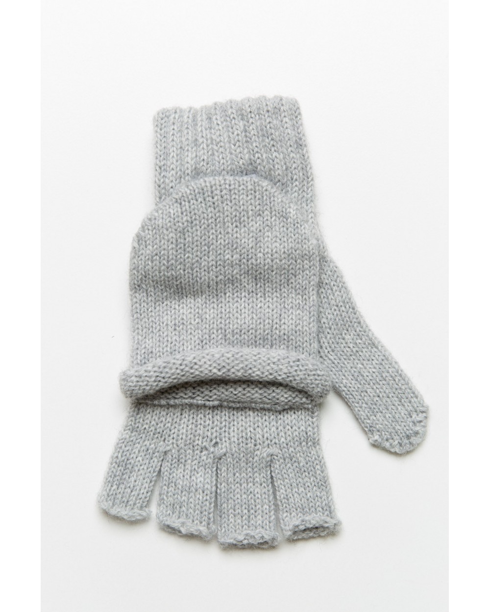 Manusi fara degete cu clapeta din lana merinos Light Grey