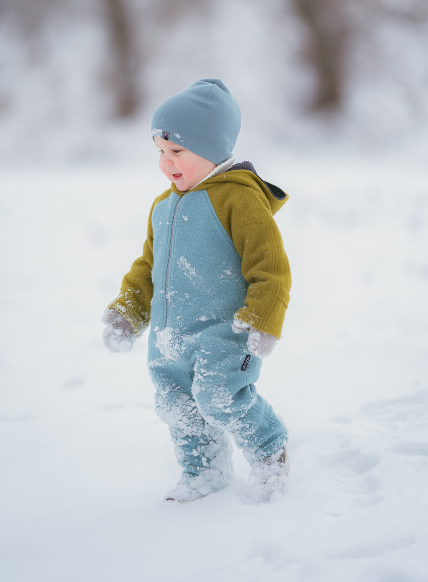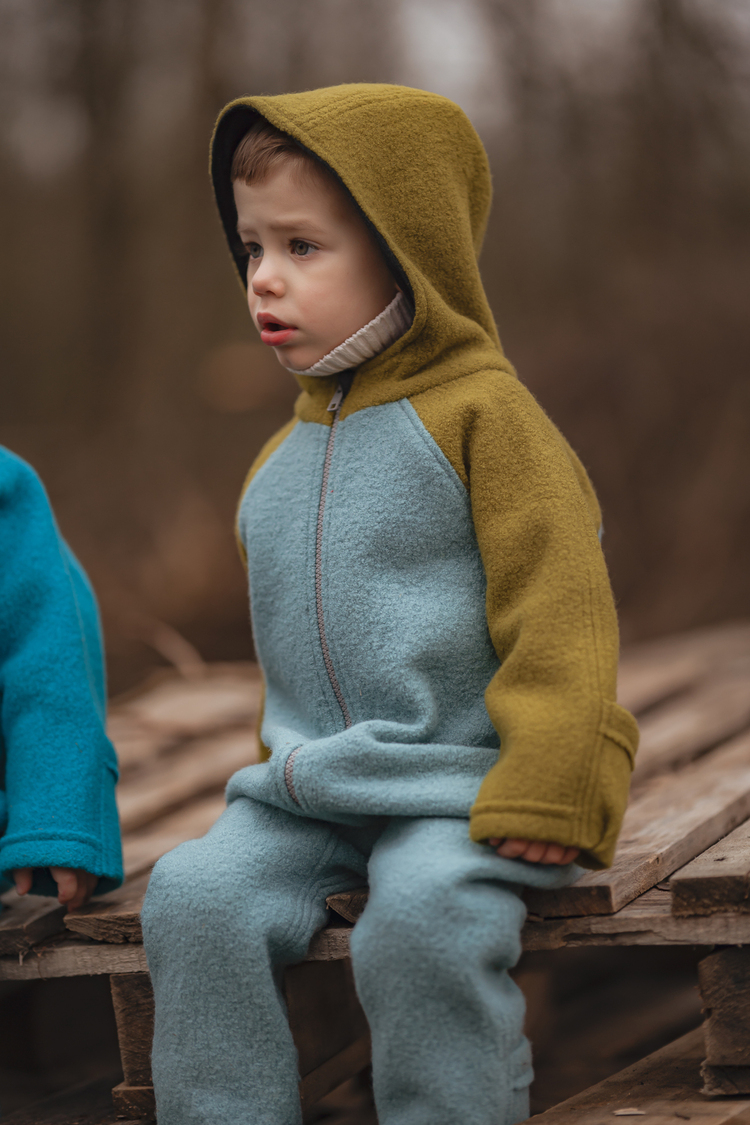 Overall din lână fiarta usor si calduros pentru copii si bebelusi. Este o alegerea foarte buna cand vine vorba de mobilitate, confort si caldura.