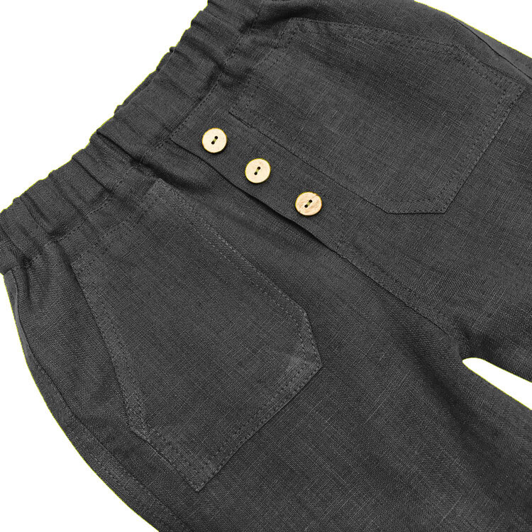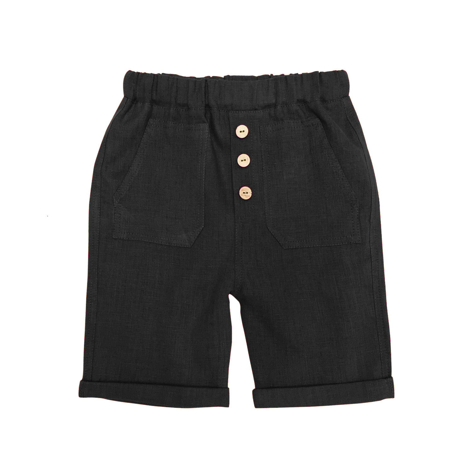 Pantaloni scurti Black din in organic pentru copii. Stil relaxat si extrem de confortabil, dintr-un material racoritor, recomandat in sezonul cald.