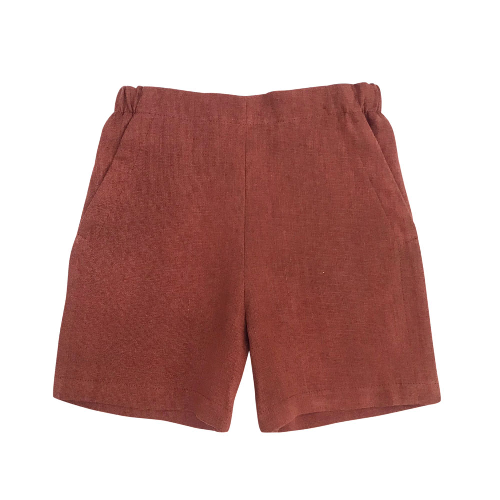 Pantaloni scurti cu buzunare Rooibos din in organic pentru copii. Stil relaxat si extrem de confortabil, dintr-un material racoritor, recomandat in sezonul cald.
