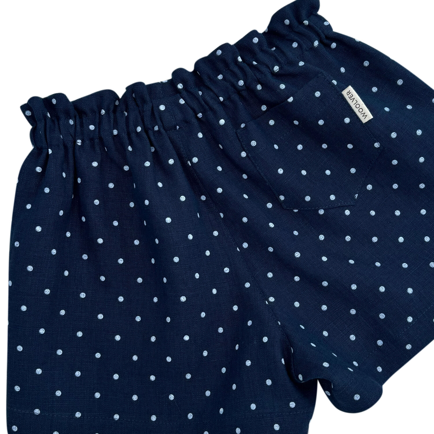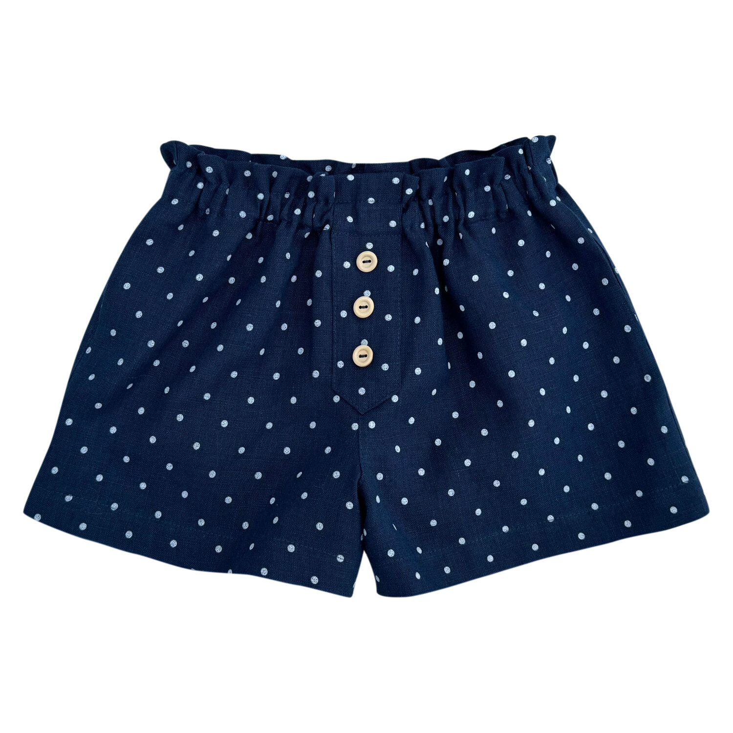 Pantaloni scurti din in organic cu nasturi Dark Navy cu buline