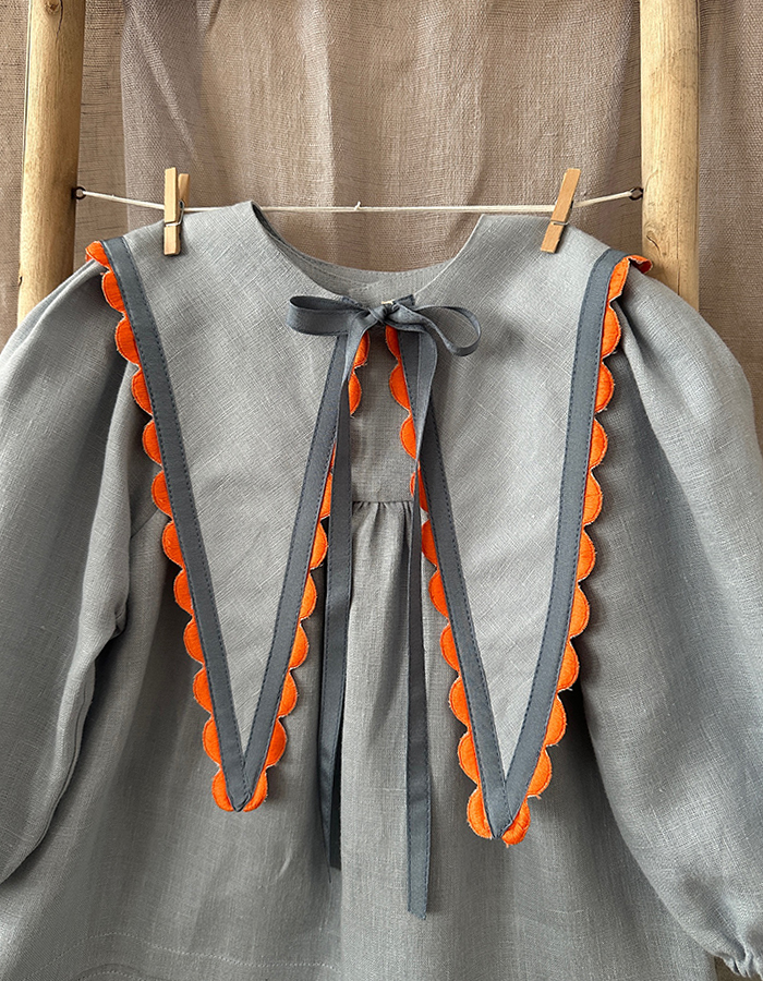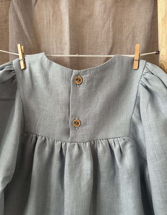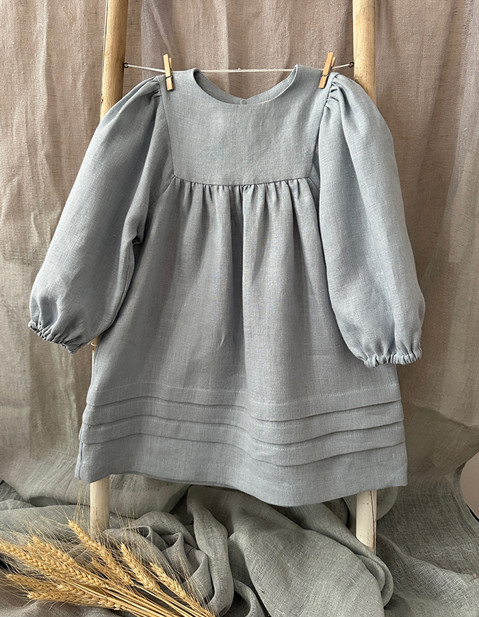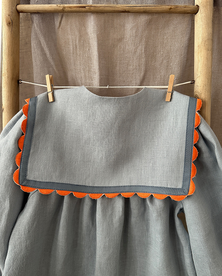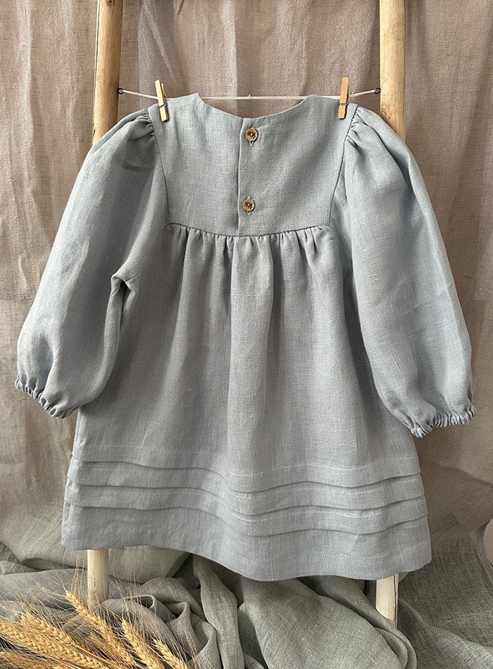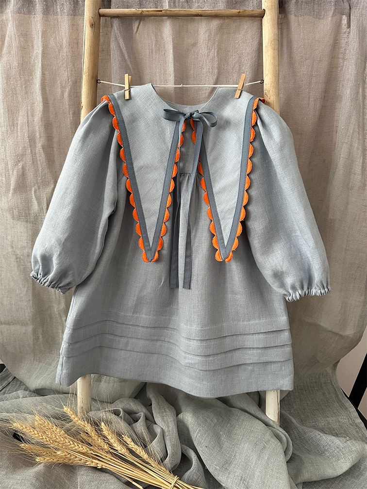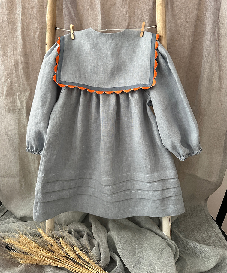 Rochie cu guler din in organic pentru copii. Practica si extrem de confortabila, dintr-un material delicat cu pielea celor mici.