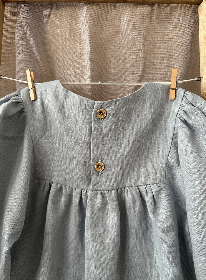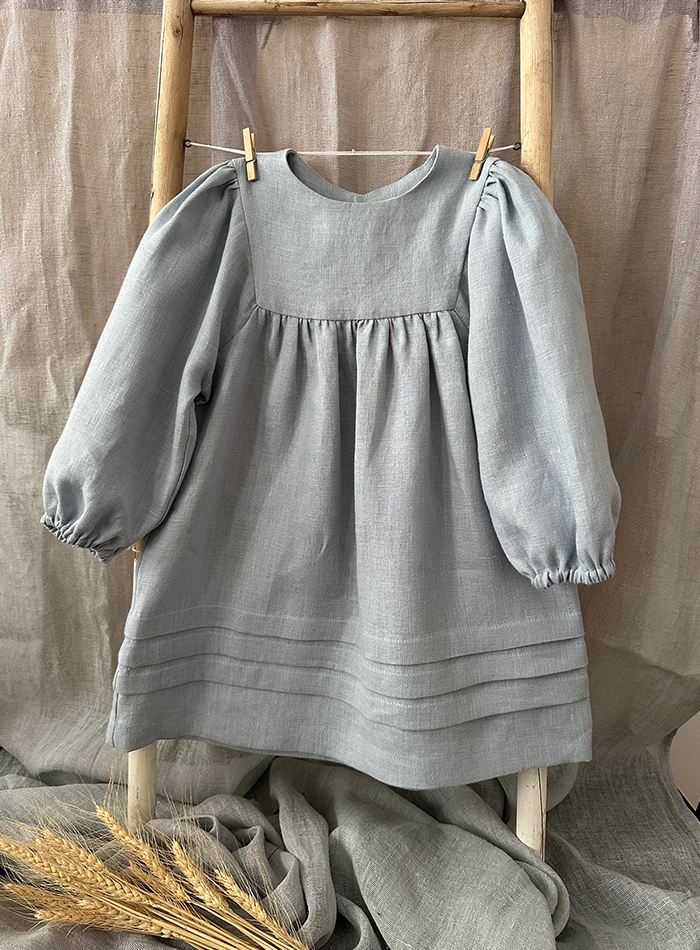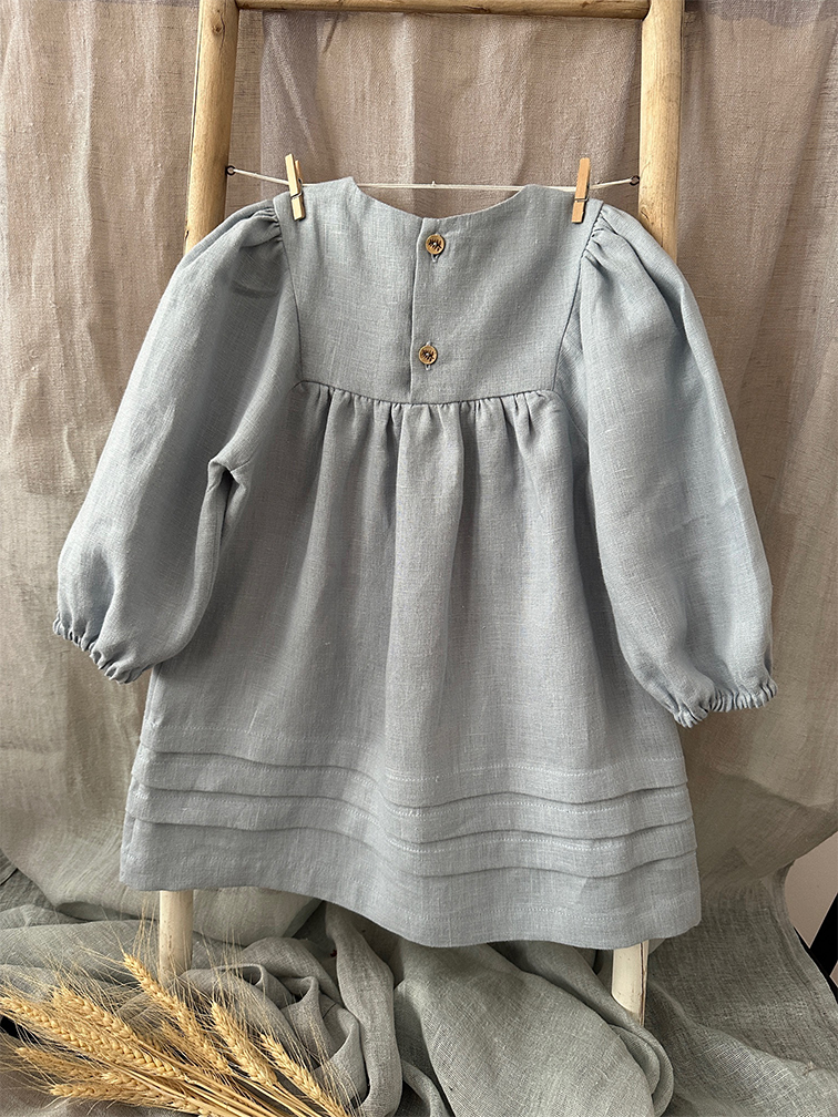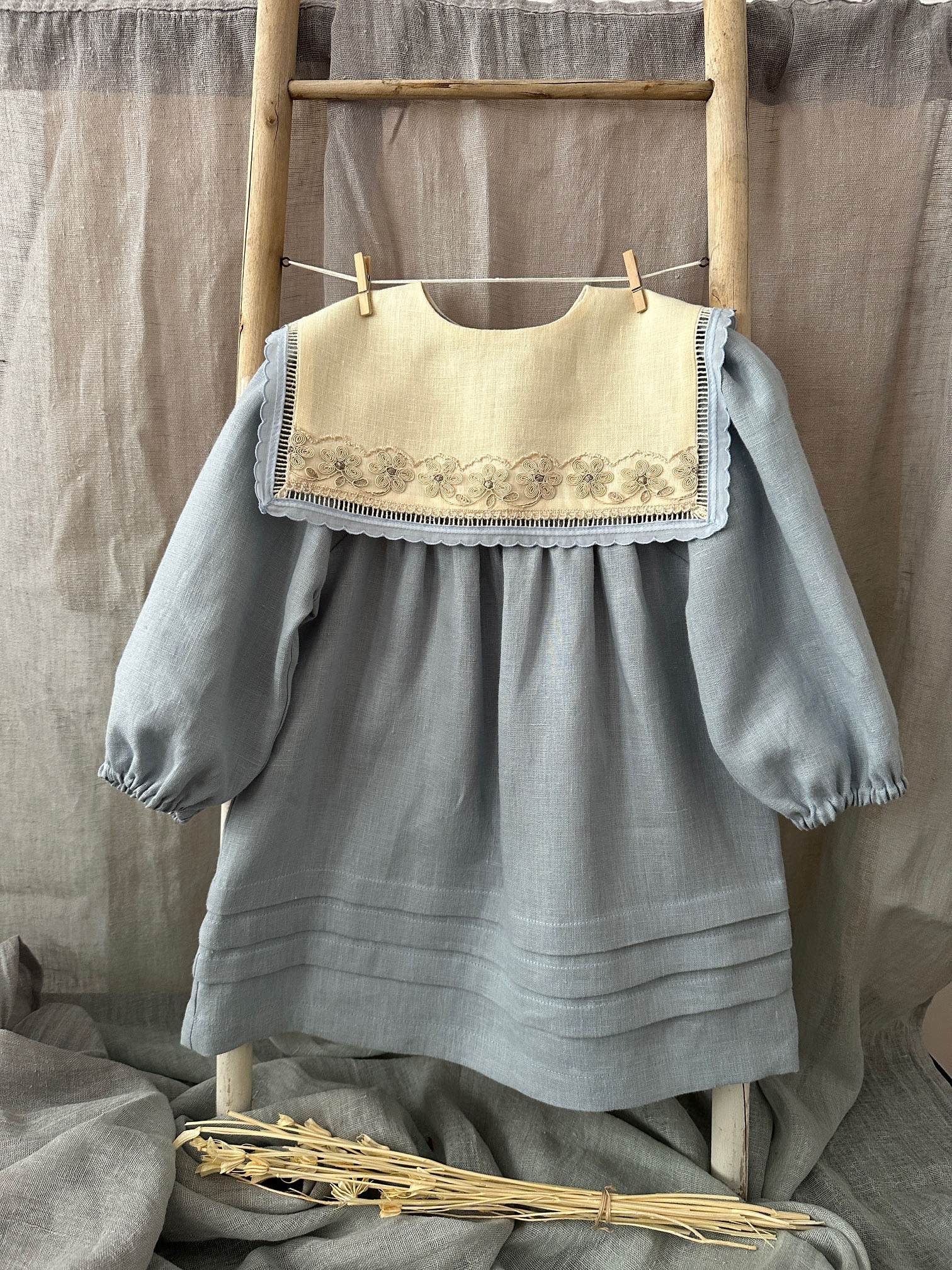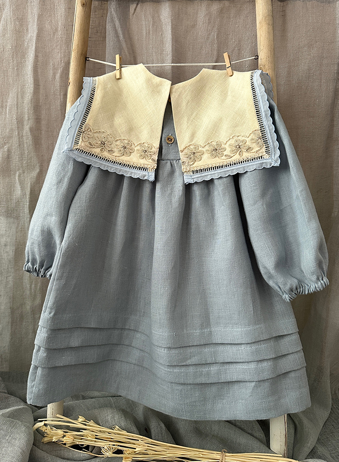 Rochie cu guler din in organic pentru copii. Practica si extrem de confortabila, dintr-un material delicat cu pielea celor mici.