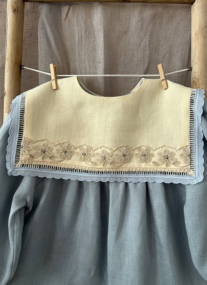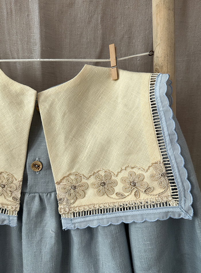 Rochie din in organic Blue Grey Sky cu guler detasabil