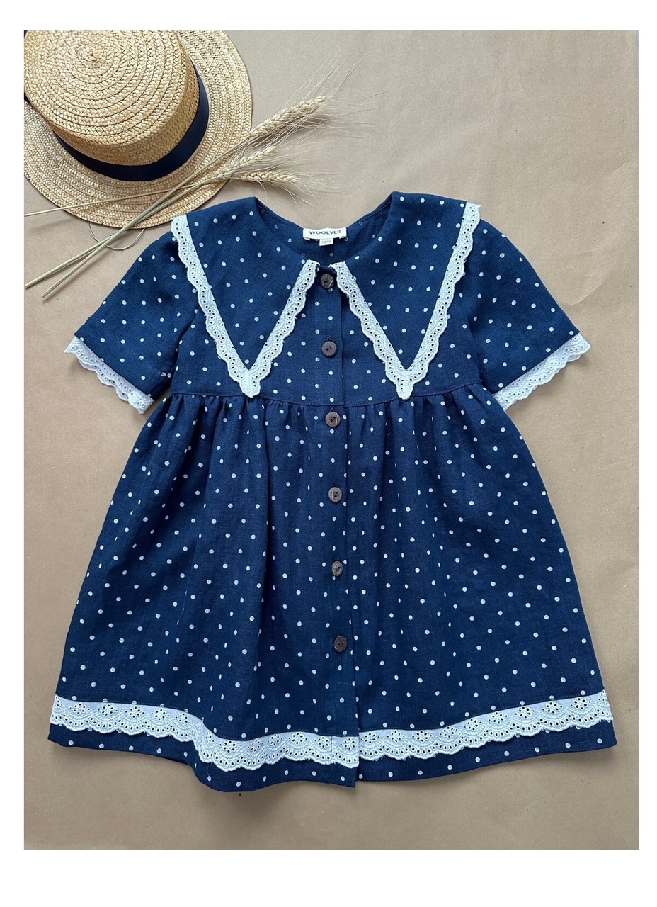 Rochie stil rustic cu model din in organic pentru copii. Practica si extrem de confortabila, dintr-un material delicat cu pielea celor mici.