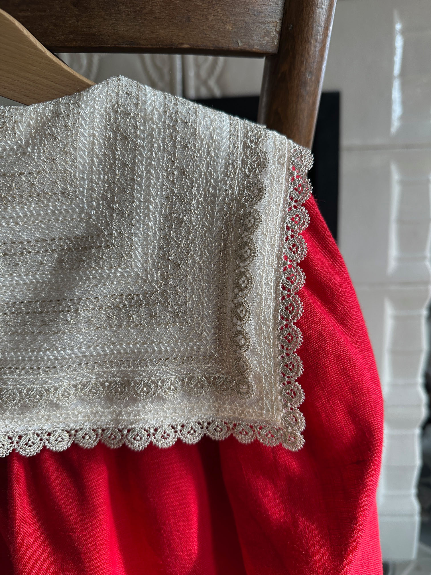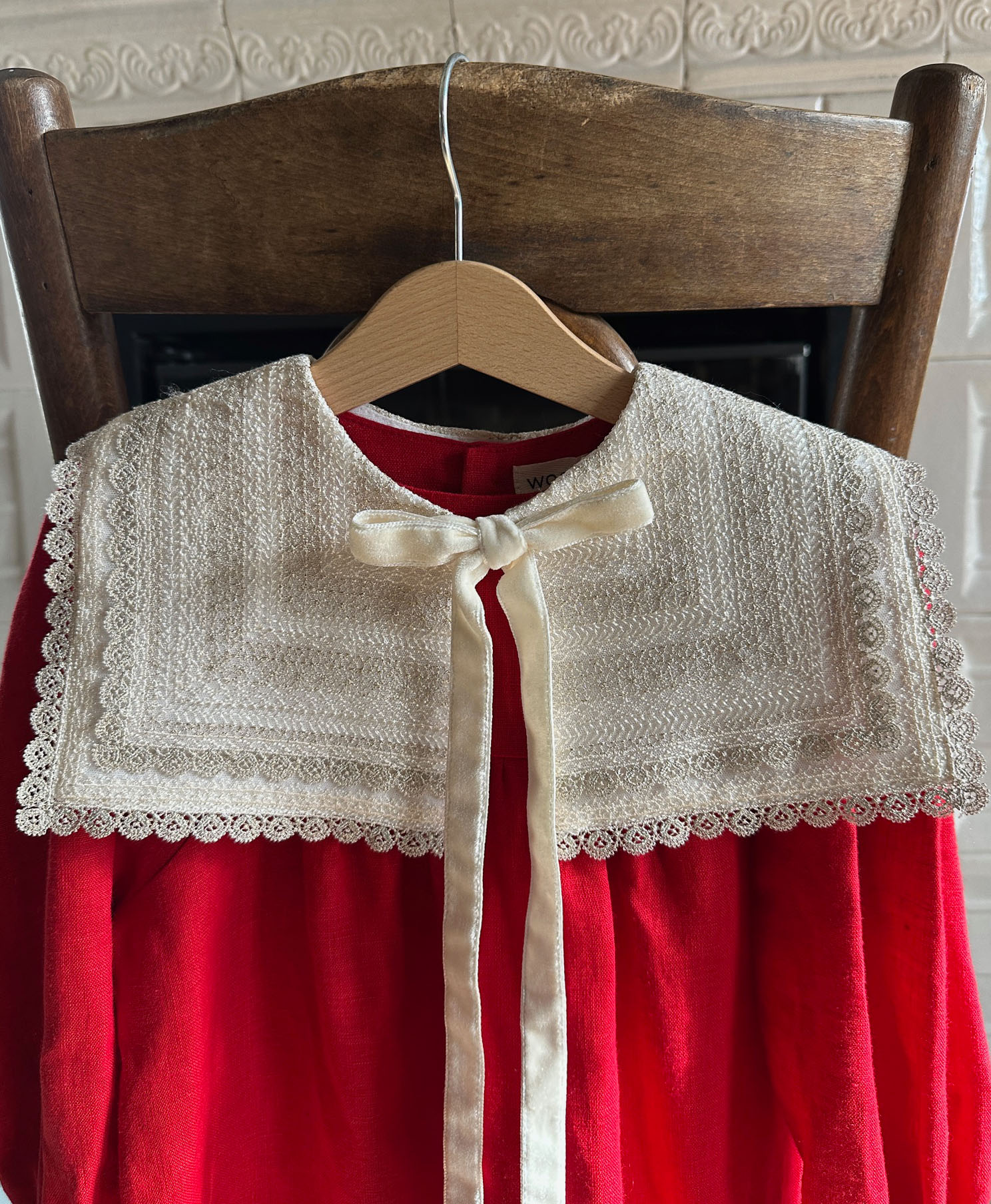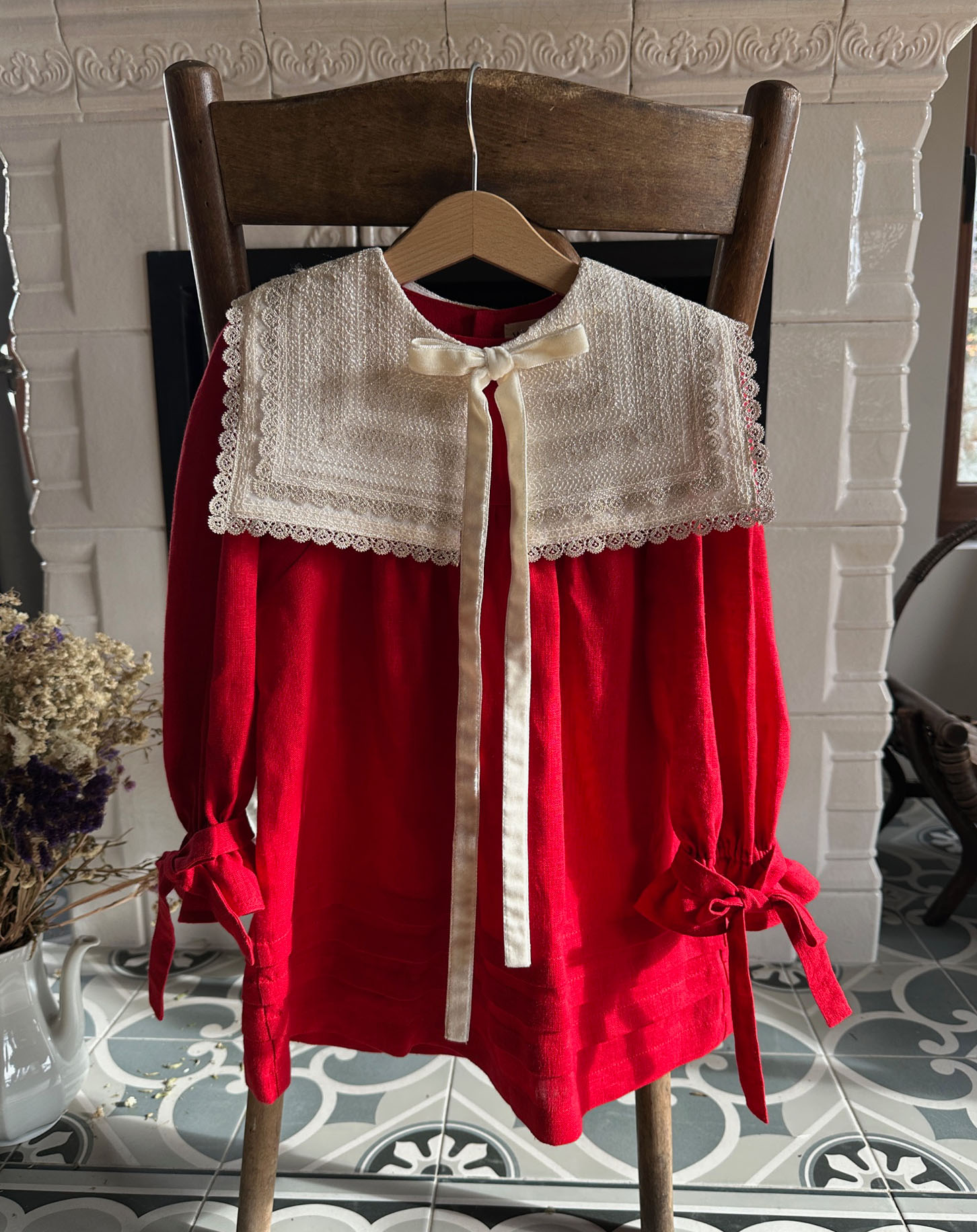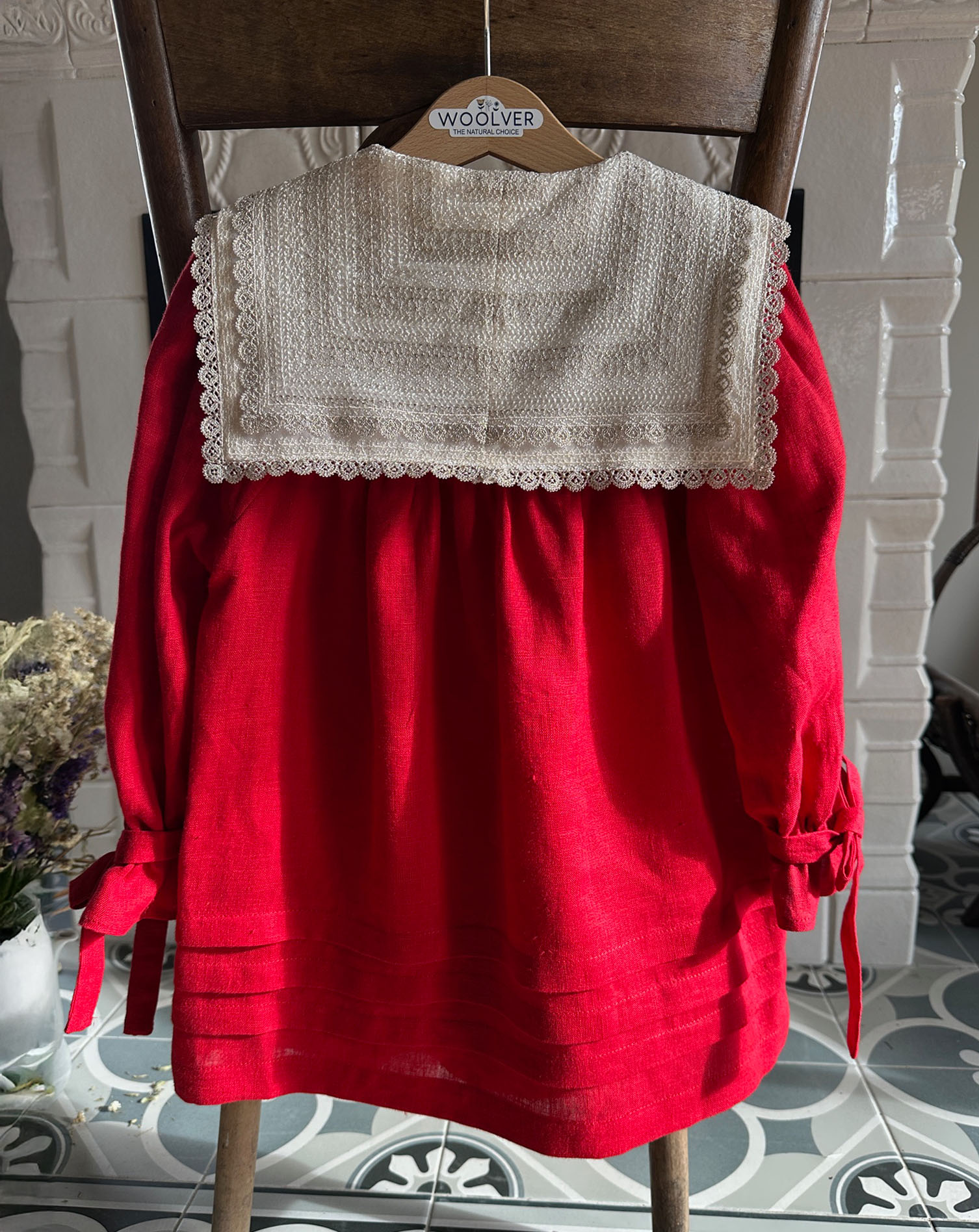 Rochie din in organic Red cu guler detașabil – Adeline Grace