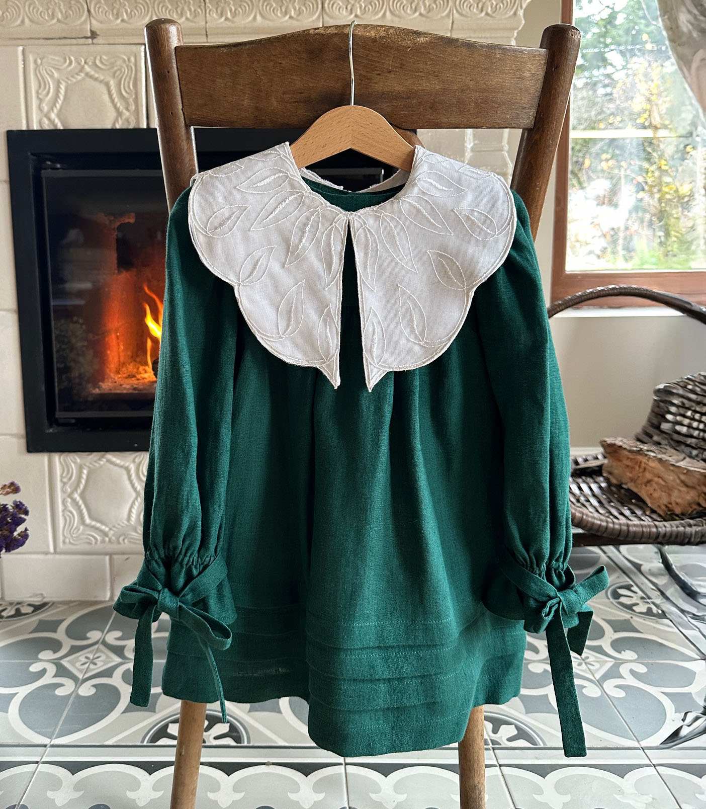 Rochie din in organic Emerald Green cu guler detașabil – Estelle Grace