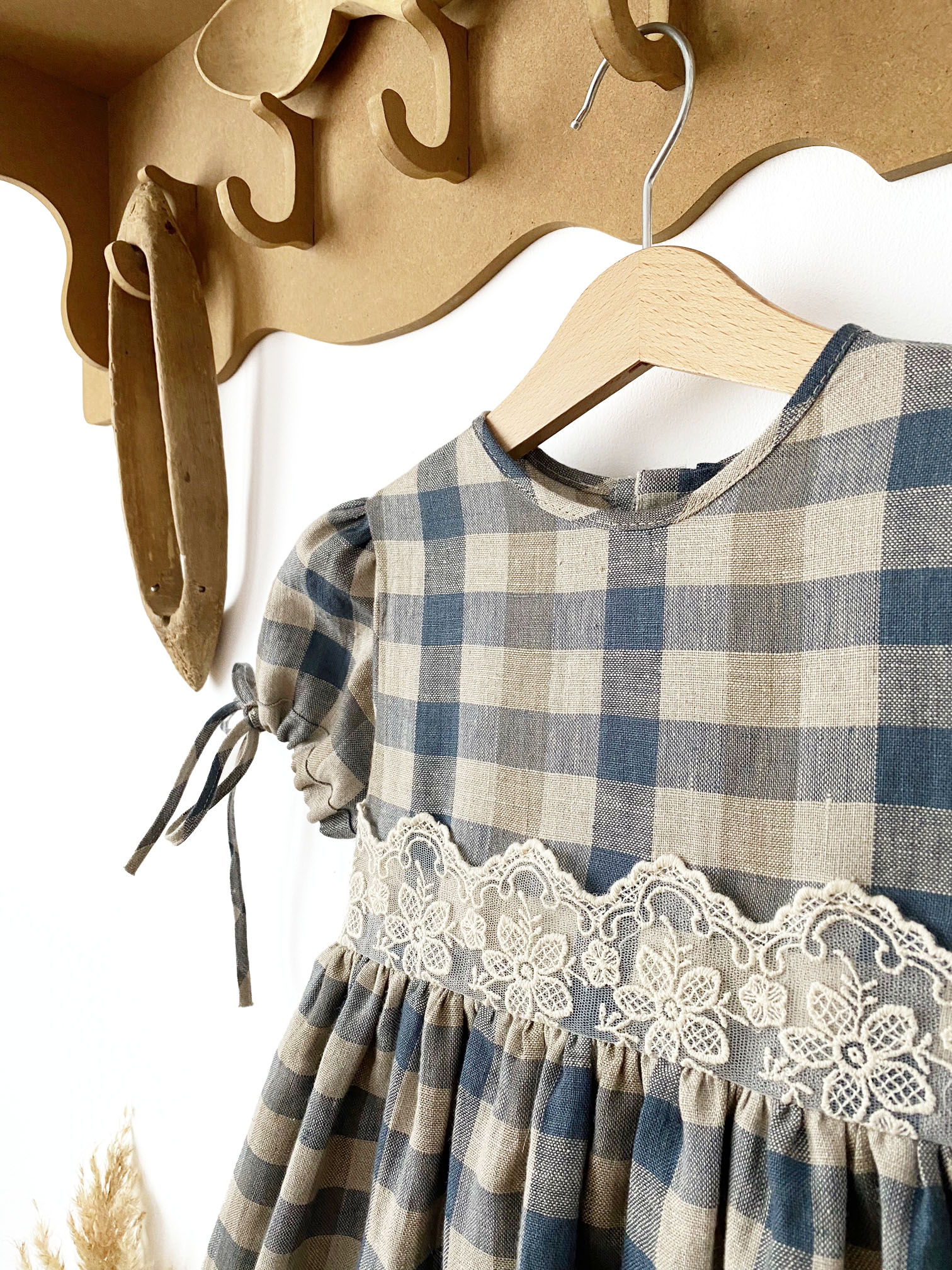 Rochie din in organic Grey Checks cu dantela