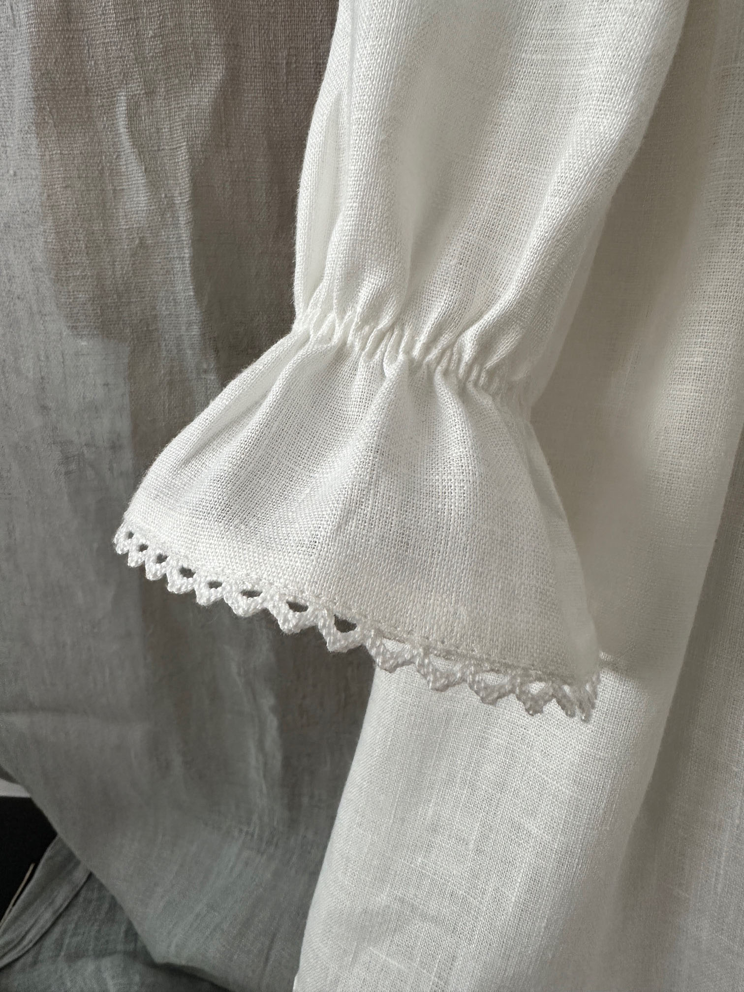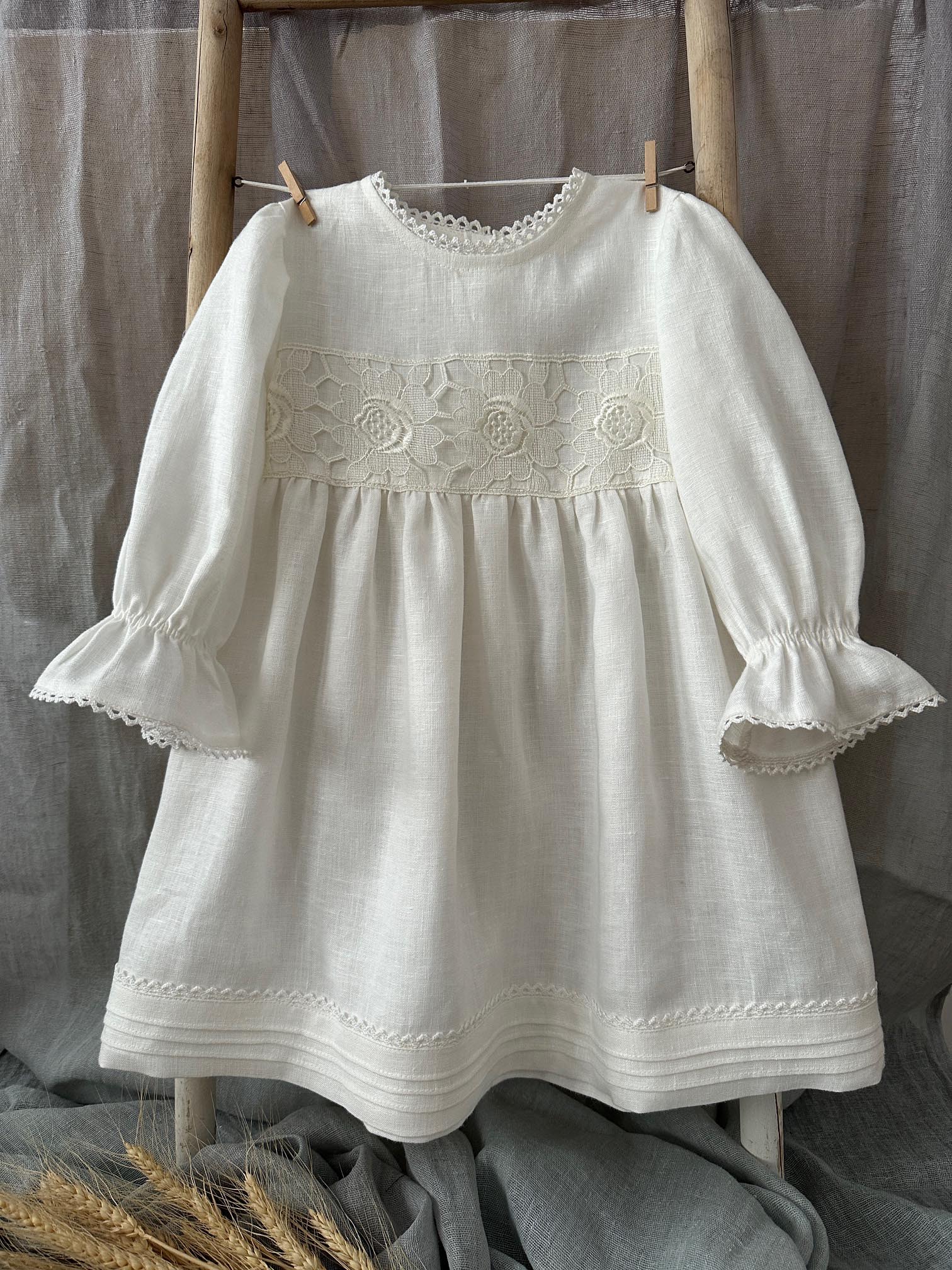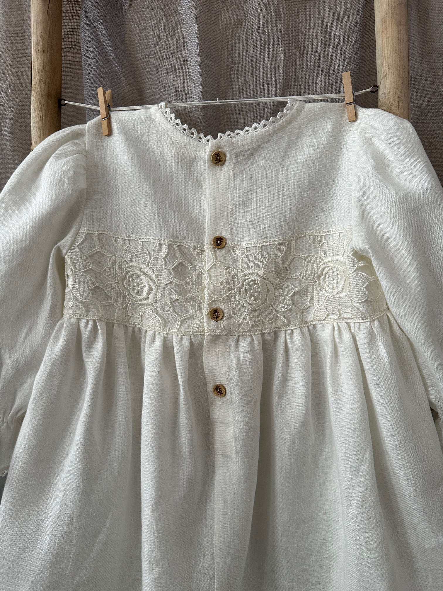 Rochie cu dantela din in organic pentru copii. Practica si extrem de confortabila, dintr-un material delicat cu pielea celor mici.