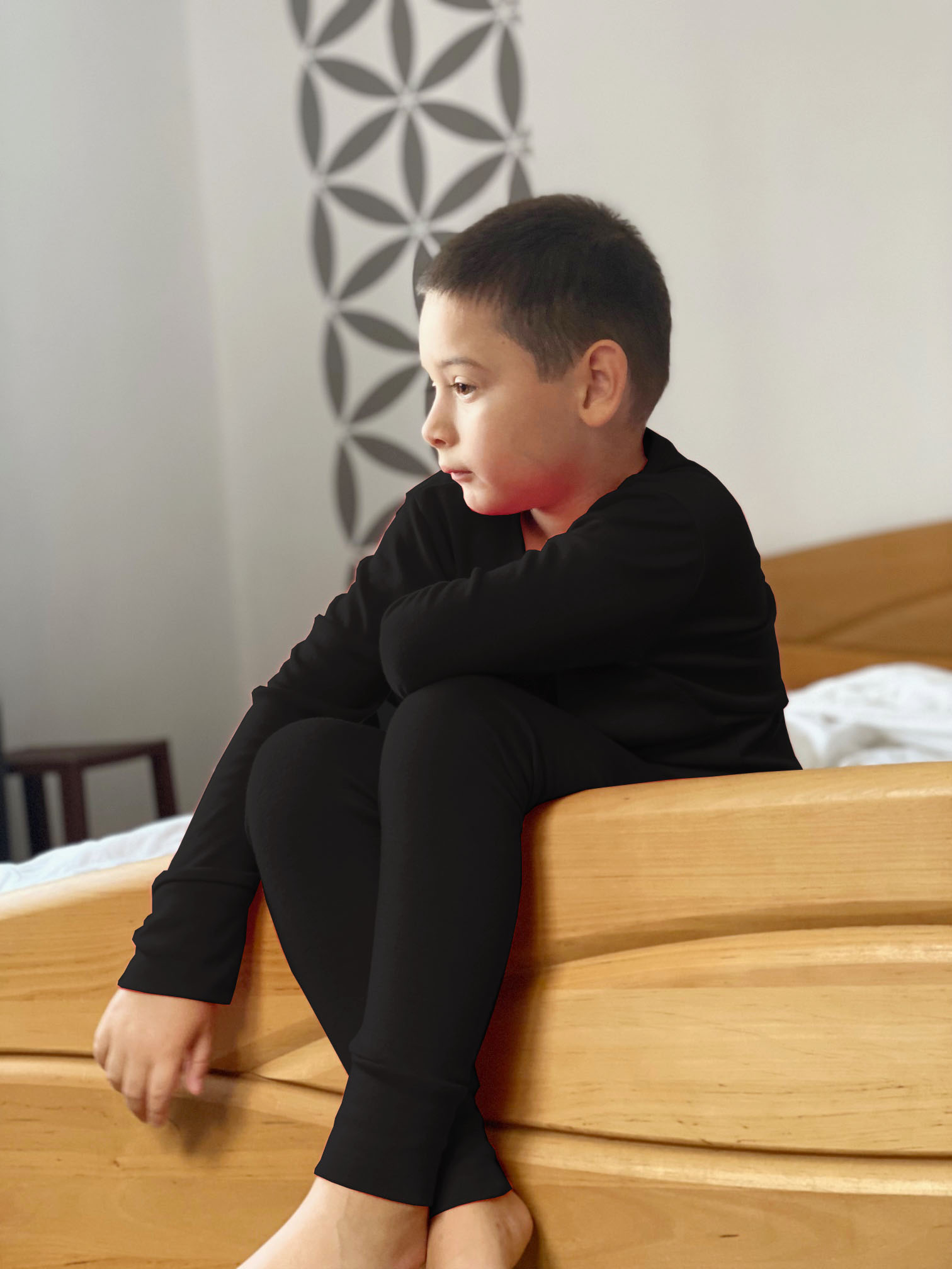 Set bluza si colanti rib din lana merinos si matase – Black