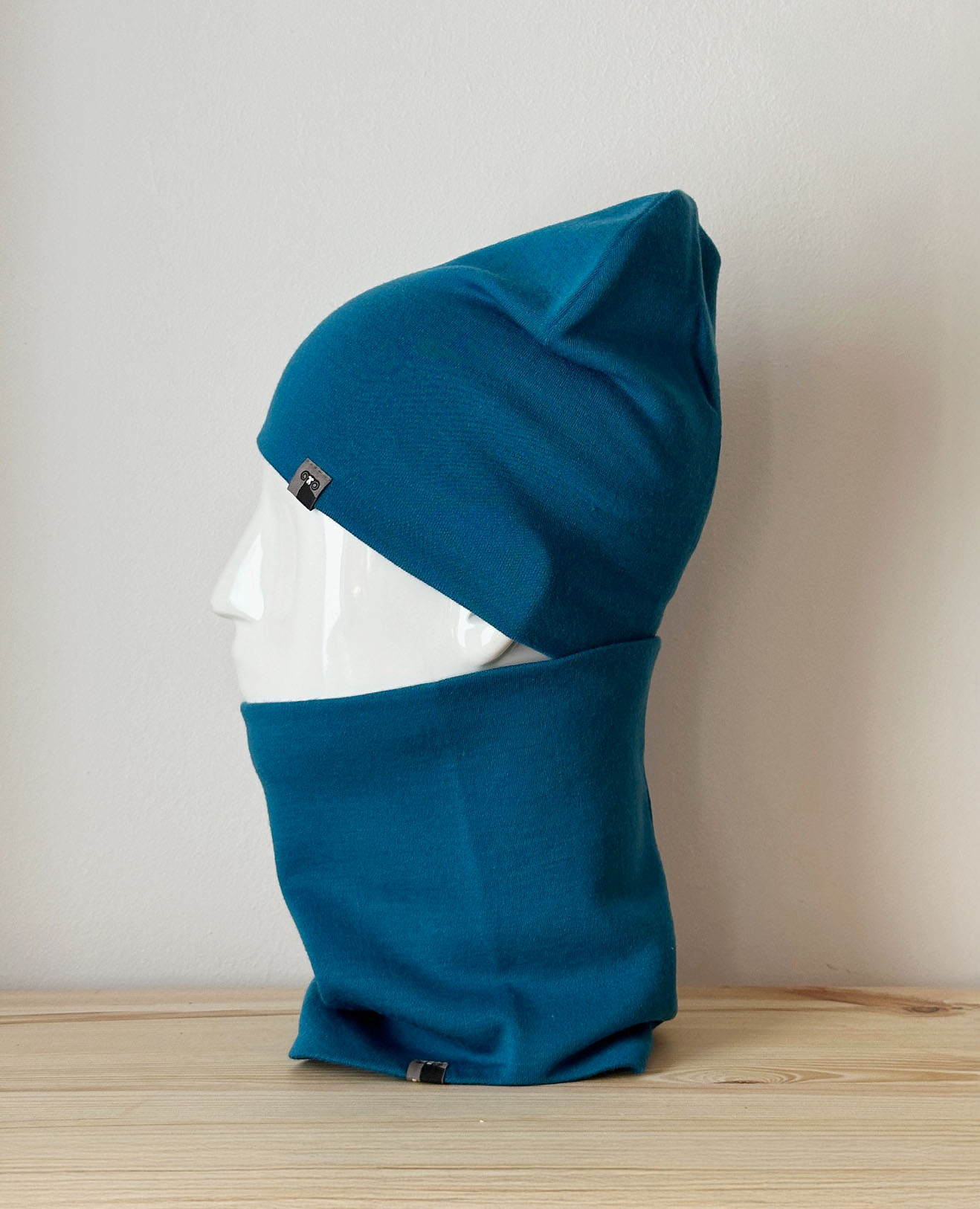 Set format din caciula dublata, tip beanie si guler din lana merinos pentru copii si adulti. Ideal in sezonul rece datorita proprietatii materialului de a regla temperatura corpului.
