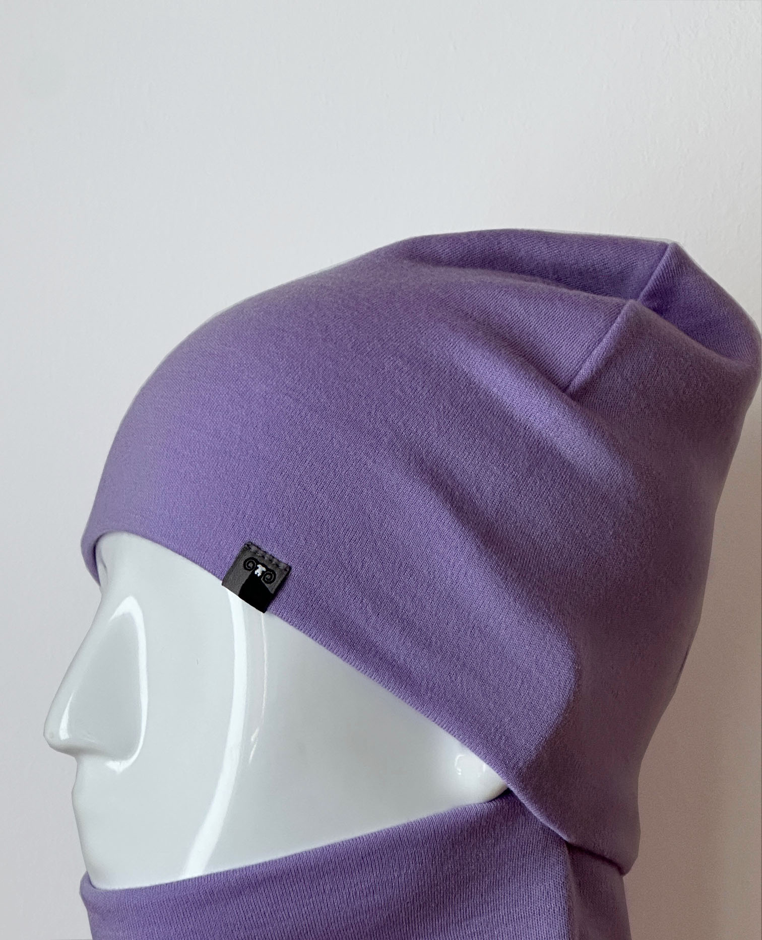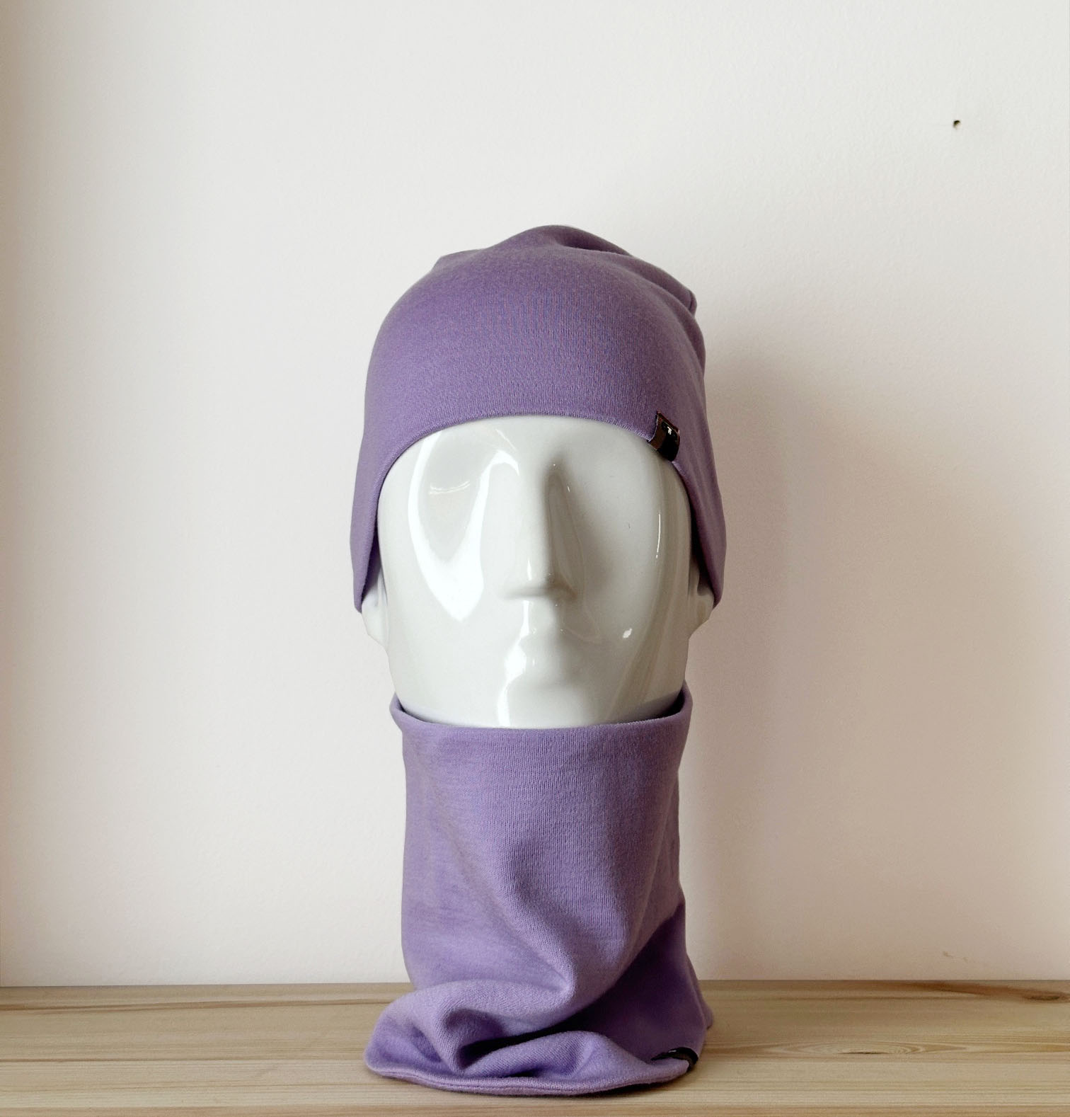 Set caciula dublata si guler din lana merinos extrafina Lavander
