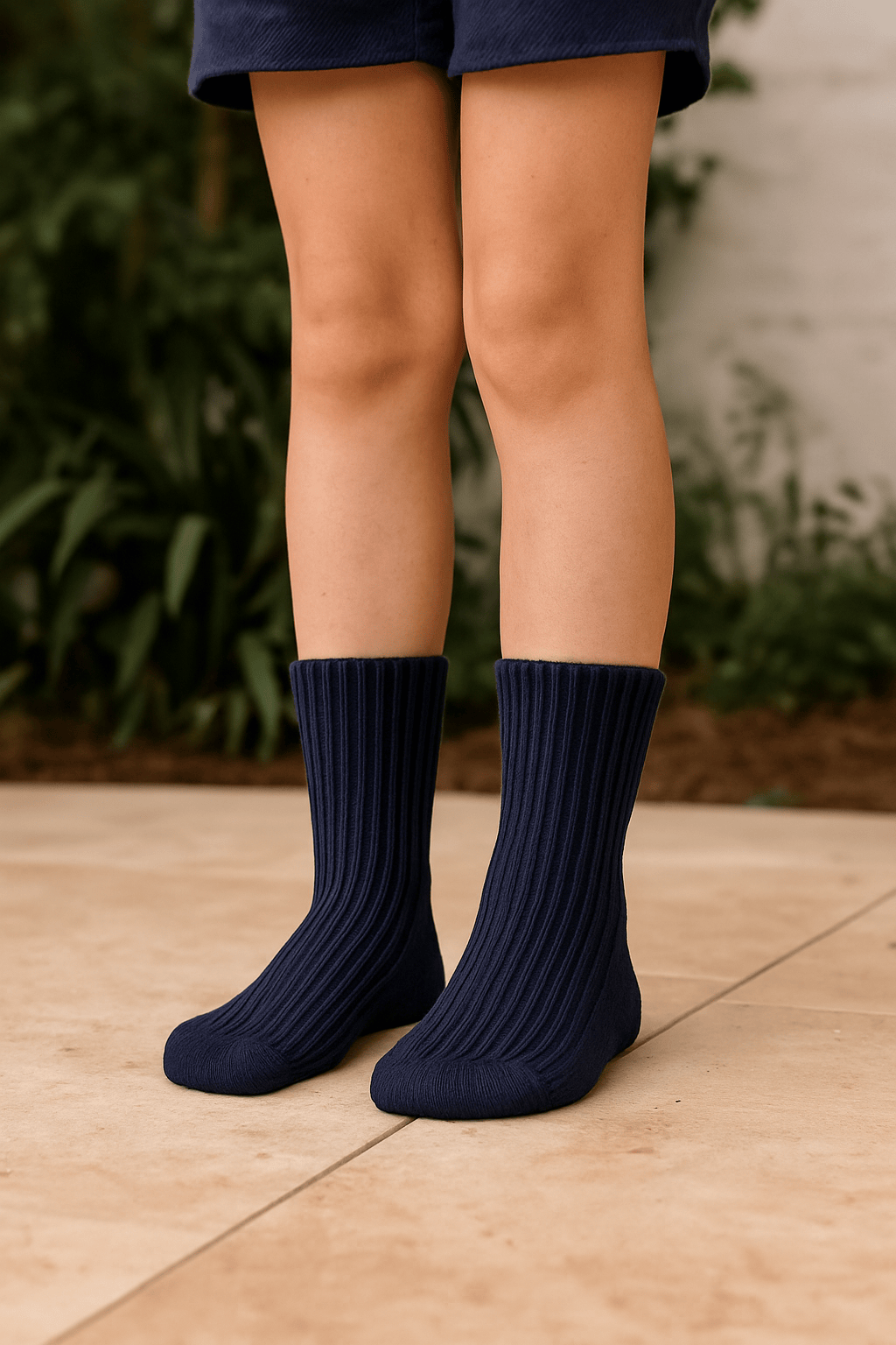 Șosete groase din lână merinos extrafină rib – Dark Blue