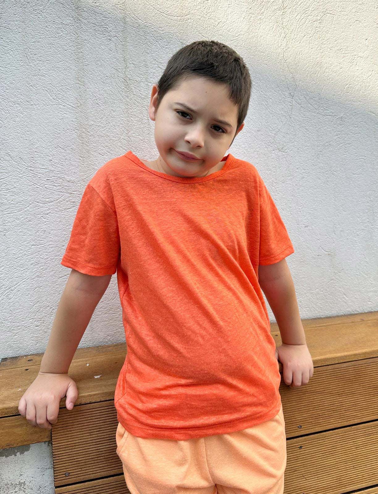 Tricou din in tricotat pentru copii. Subtire si aerat, perfect pentru a fi purtat in orice sezonul cald . Ideal ca strat de corp sau ca atare.